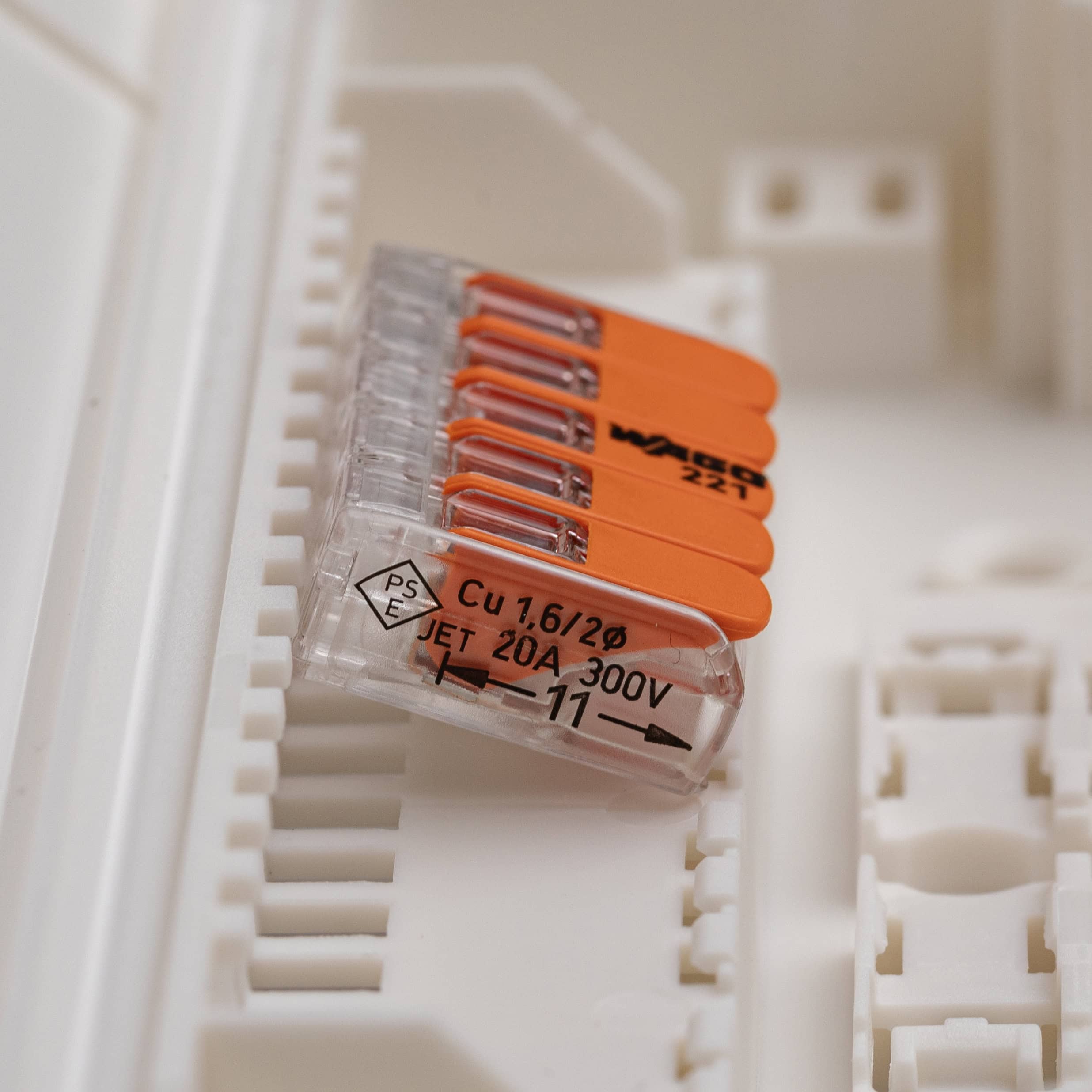 - Eén doos voor alle 221-serie 4 mm² connectoren.